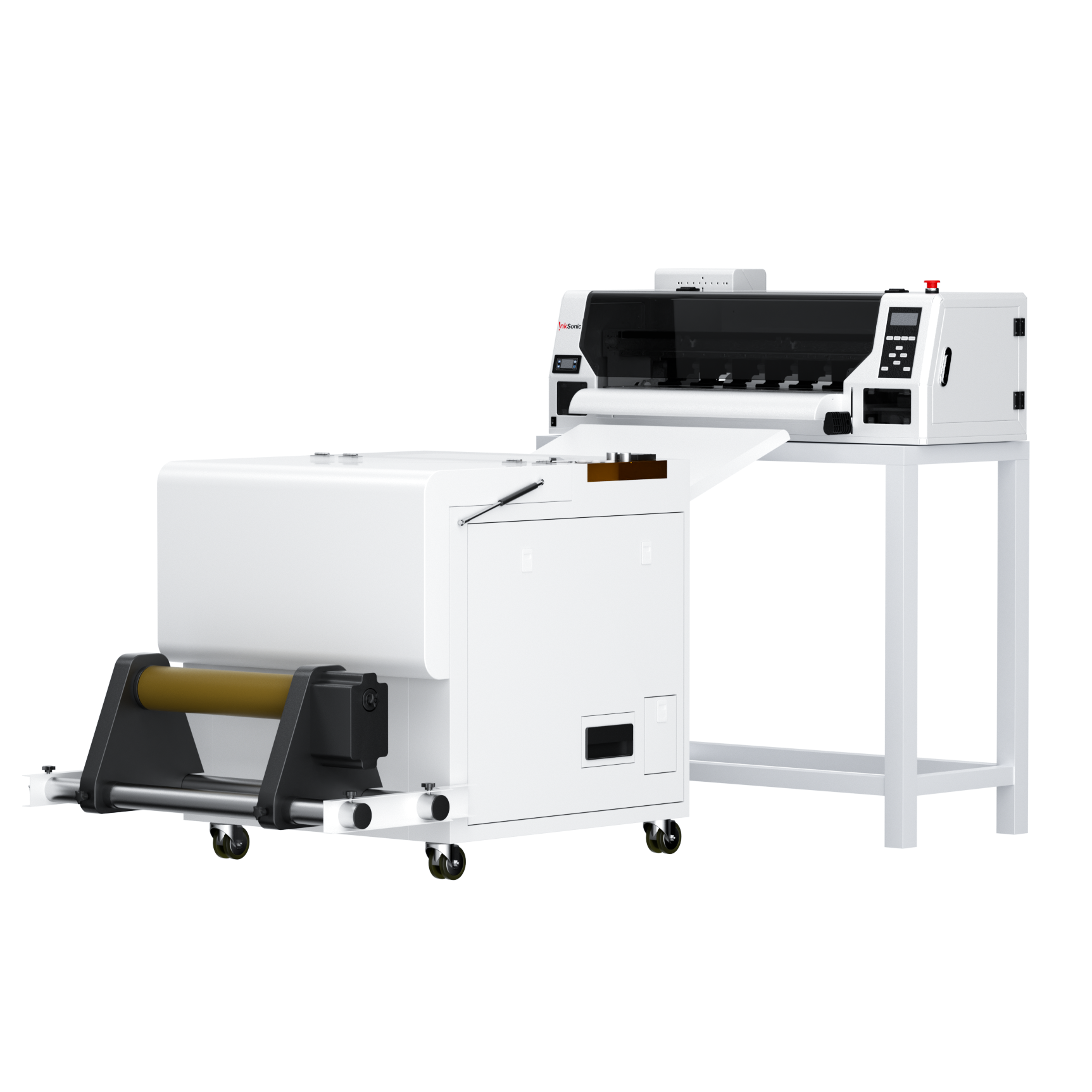 When paired with a powder shaker, the system automates film feeding, collecting, powder shaking, curing, and white-ink circulation. This setup cuts down manual work and keeps your production running smoothly and efficiently.