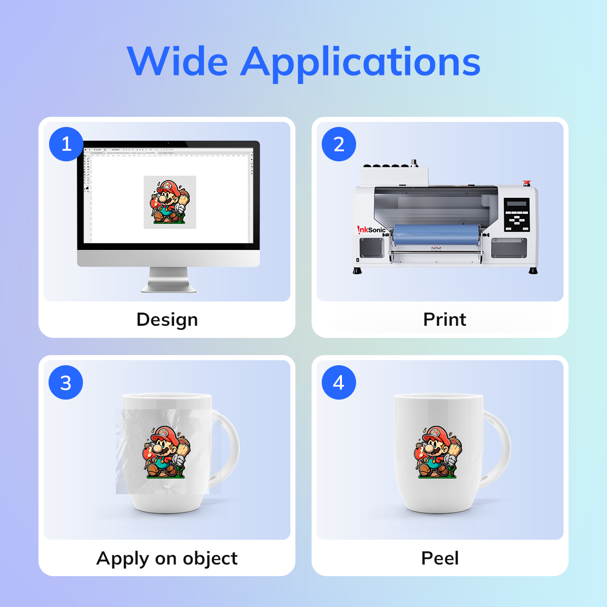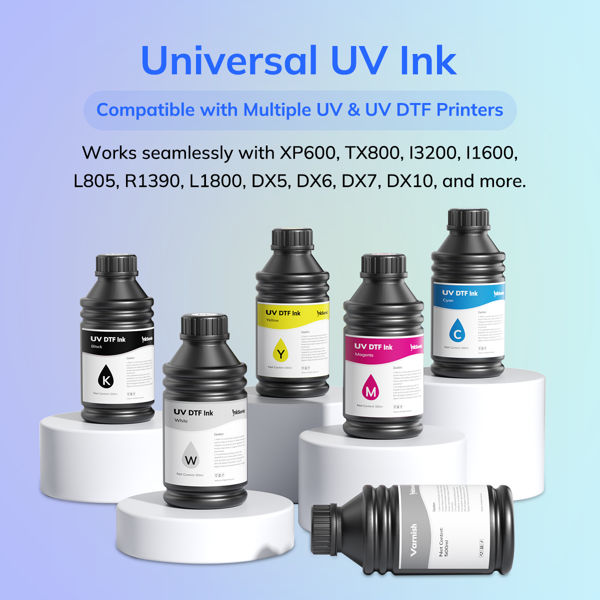 Kifejezetten éles részletek és élénk, tartós színek biztosítására készült UV DTF nyomtatáshoz, az InkSonic UV DTF tintája megkönnyíti és megbízhatóvá teszi az egyedi nyomtatást. Ideális választás mindazoknak, akik kiváló nyomtatási minőséget szeretnének gond nélkül.