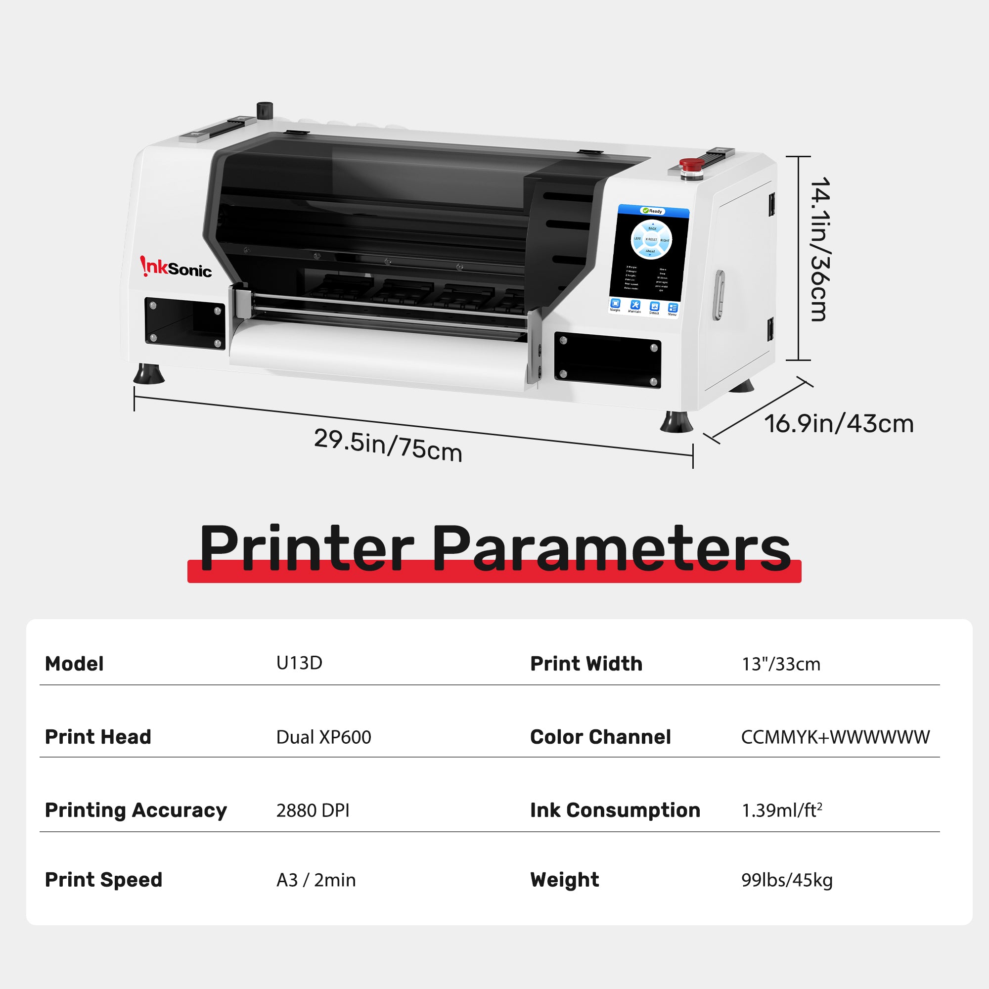The main difference between the U13 XP600 and the U13D Dual-XP600 is the number of print heads, the U13D features dual XP600 print heads, which allows significantly higher throughput. In other words, if you have higher volume demands and a larger budget, the U13D is more suitable.